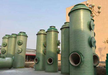 吸收塔是实现吸收操作的设备。按气液相接触形态分为三类。第一类是气体以气泡形态分散在液相中的板式塔、鼓泡吸收塔、搅拌鼓泡吸收塔;第二类是液体以液滴状分散在气相中的喷射器、文氏管、喷雾塔;第三类为液体以膜状运动与气相进行接触的填料吸收塔和降膜吸收塔。塔内气液两相的流动方式可以逆流也可并流。通常采用逆流操作,吸收剂以塔顶加入自上而下流动,与从下向上流动的气体接触,吸收了吸收质的液体从塔底排出,净化后的气体从塔顶排出。